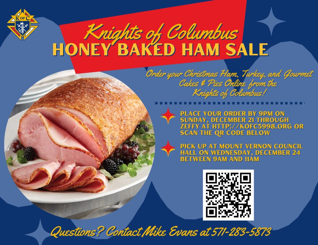 Order your Delicious Christmas Ham, Turkey, and Gourmet Cakes & Pies Online from the Knights of Columbus!